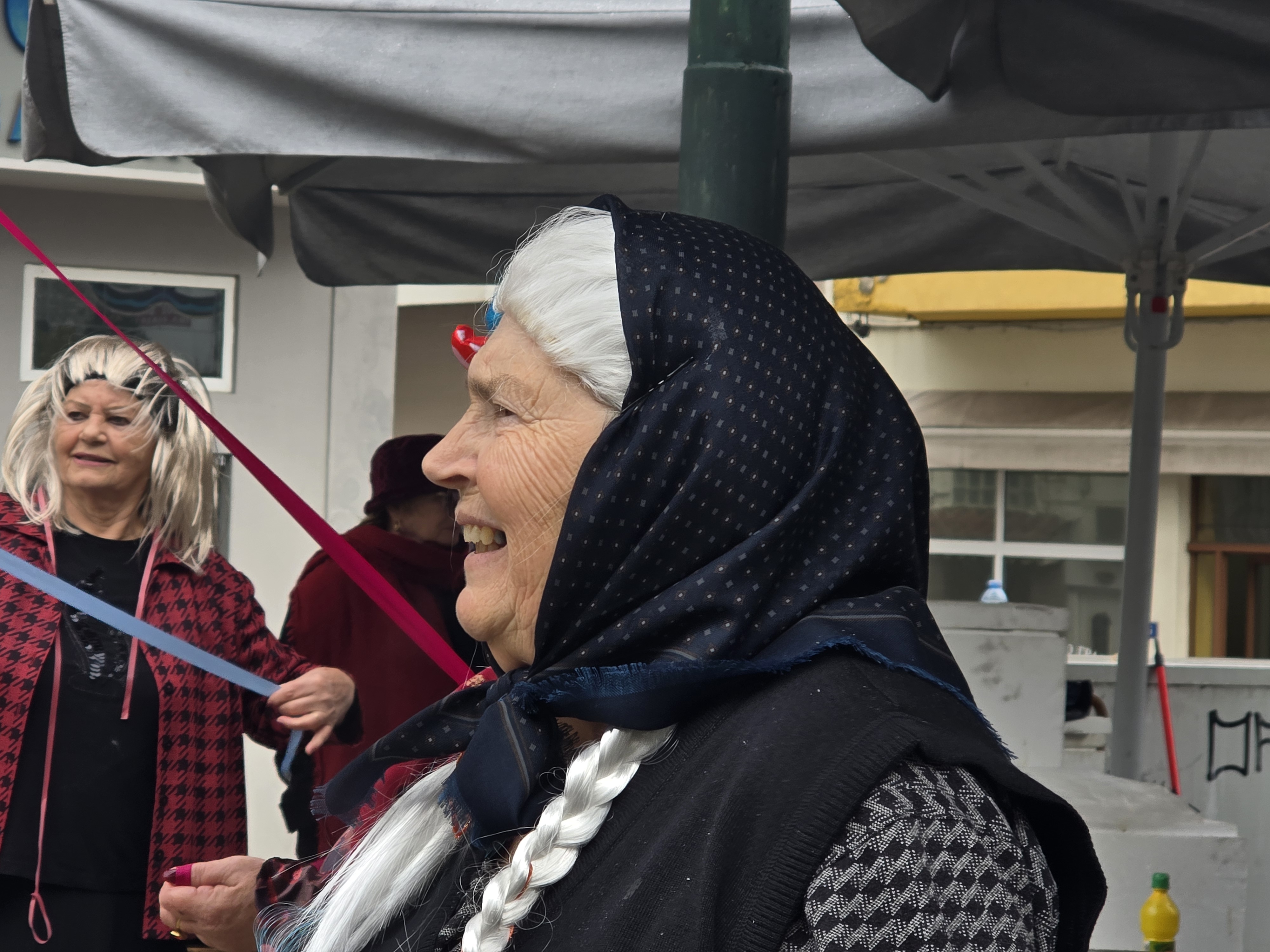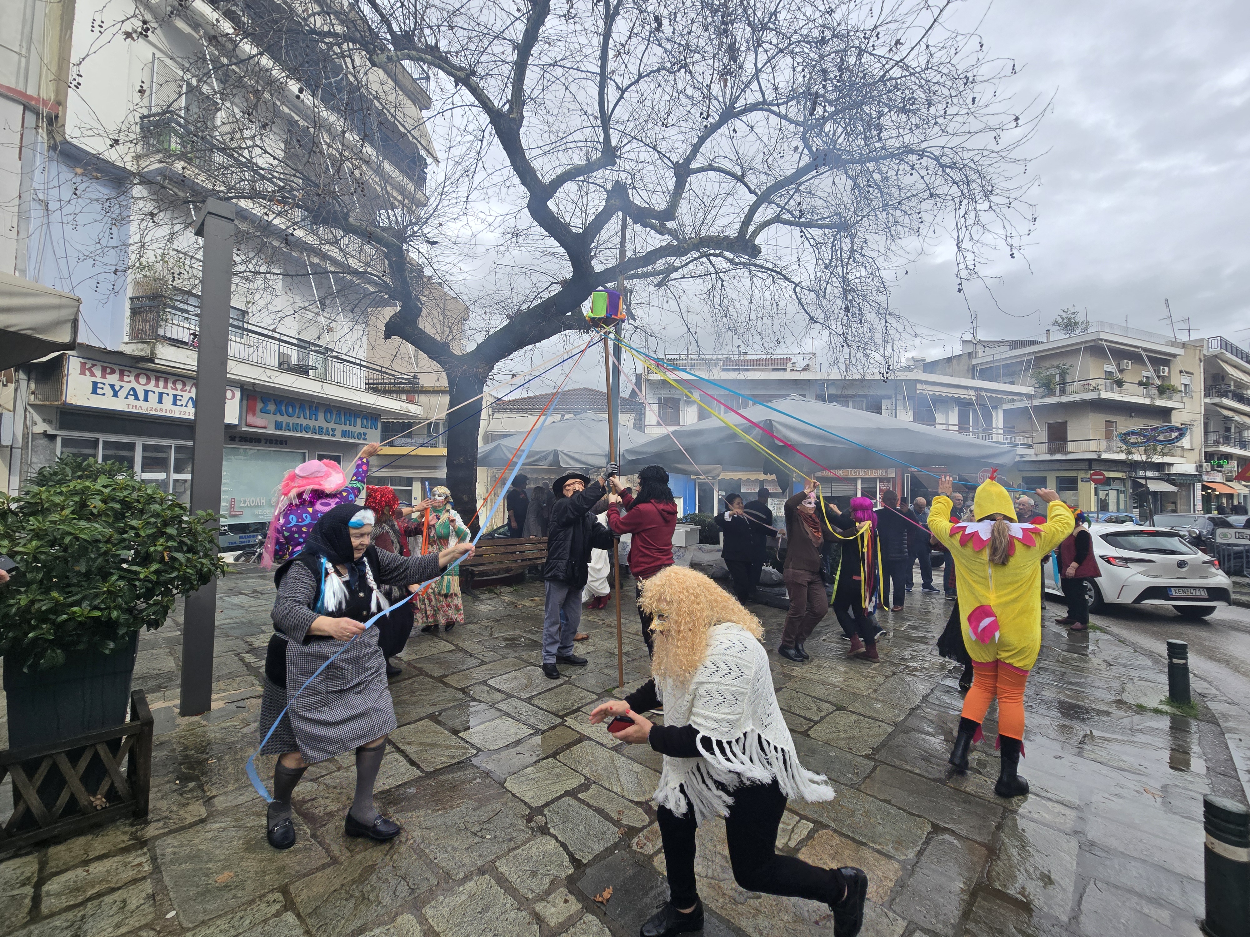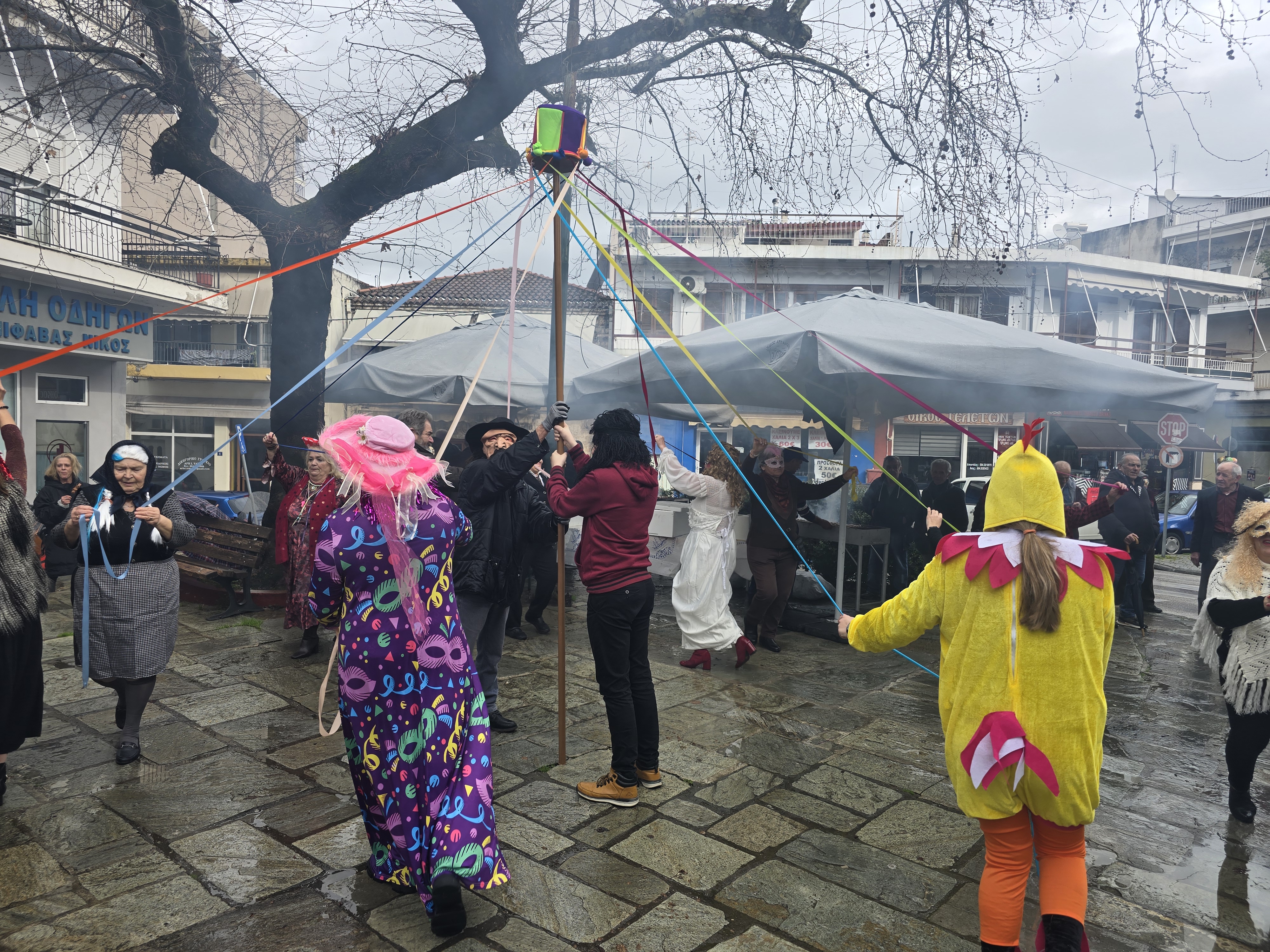 Ξεχωριστή νότα έδωσε το χορευτικό τμήμα του ΚΑΠΗ, το οποίο “έπλεξε” και χόρεψε το παραδοσιακό γαϊτανάκι, αναβιώνοντας ένα από τα πιο όμορφα Αποκριάτικα έθιμα. Τραγούδια, χορός και γέλια γέμισαν την αίθουσα και την πλατεία με τους χορευτές να διασκεδάζουν με την ψυχή τους.