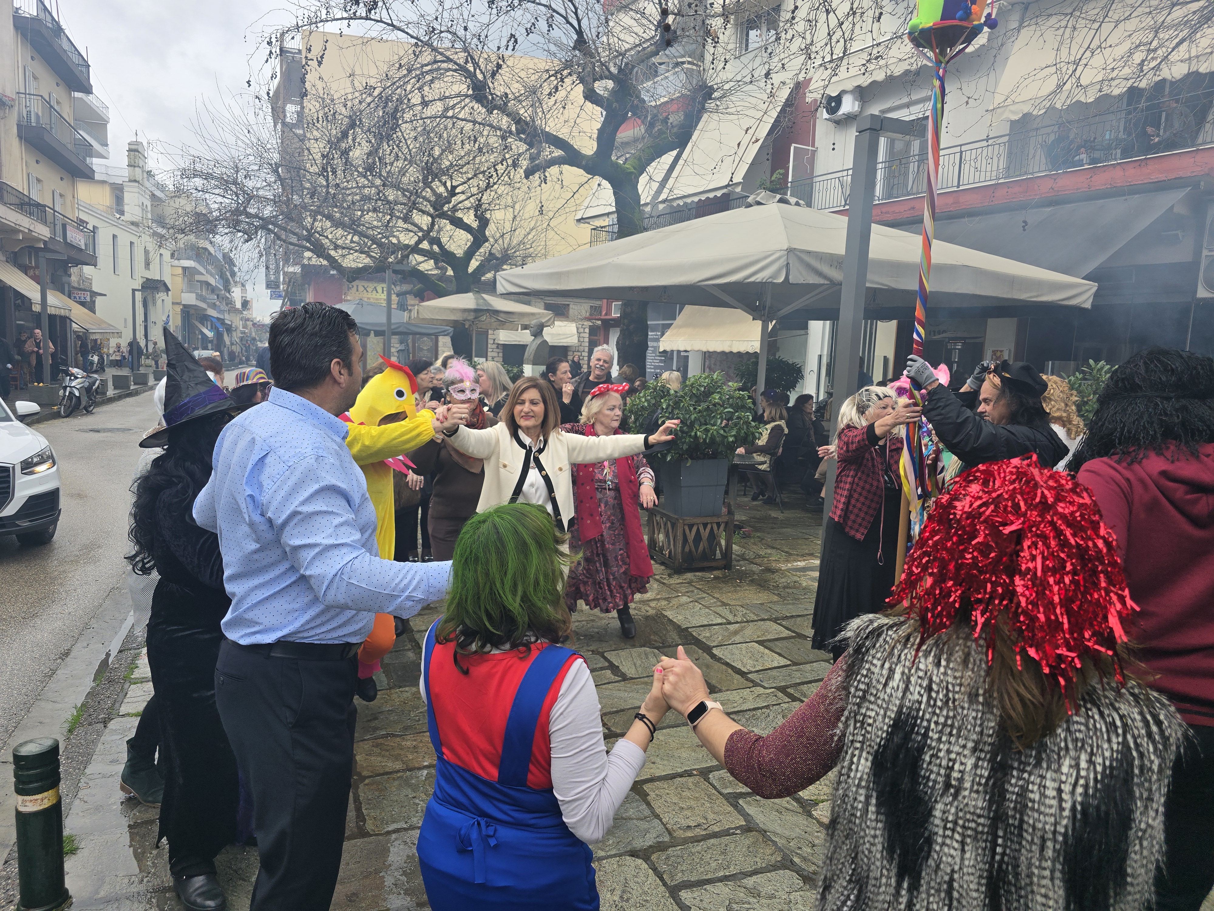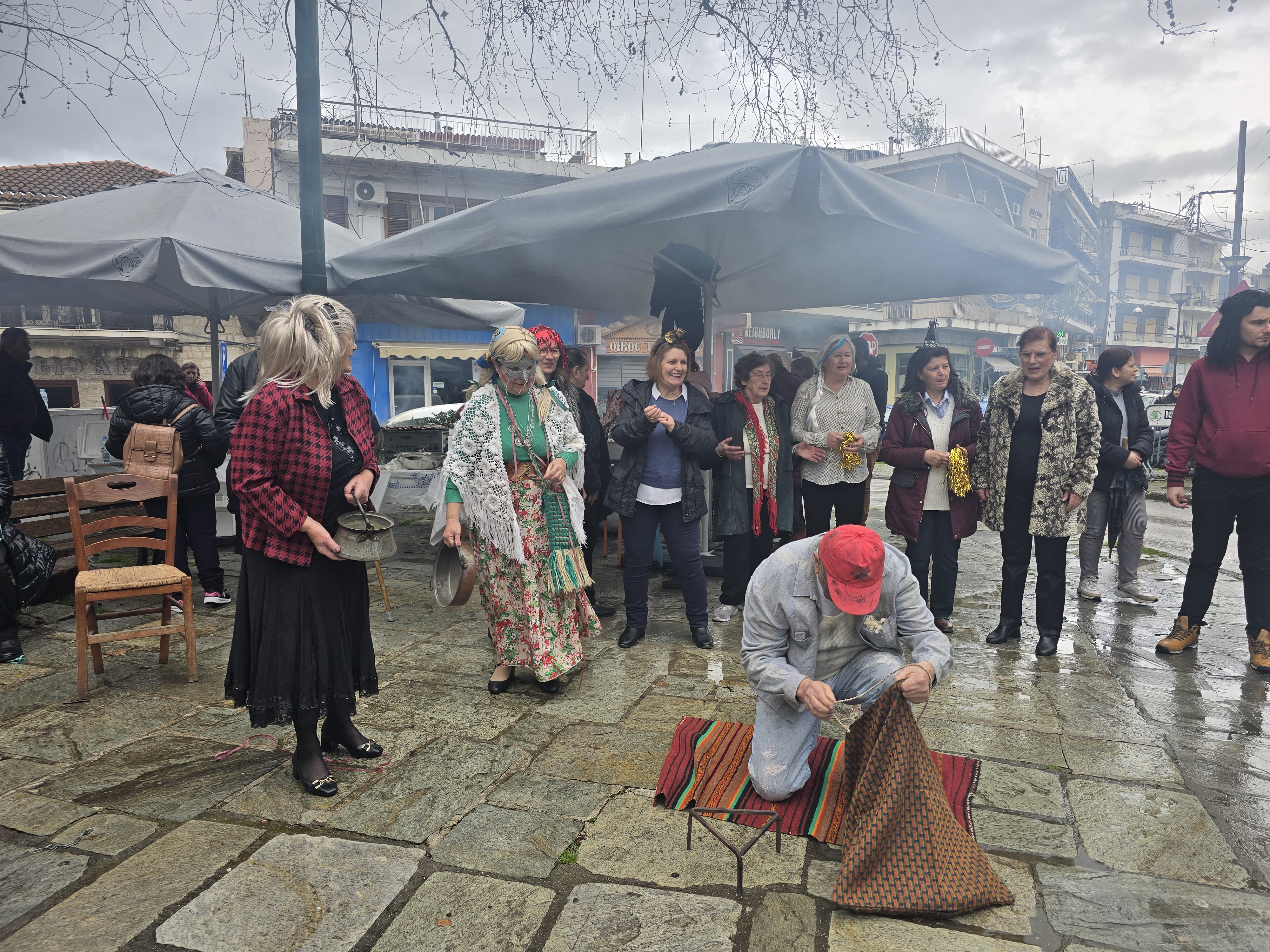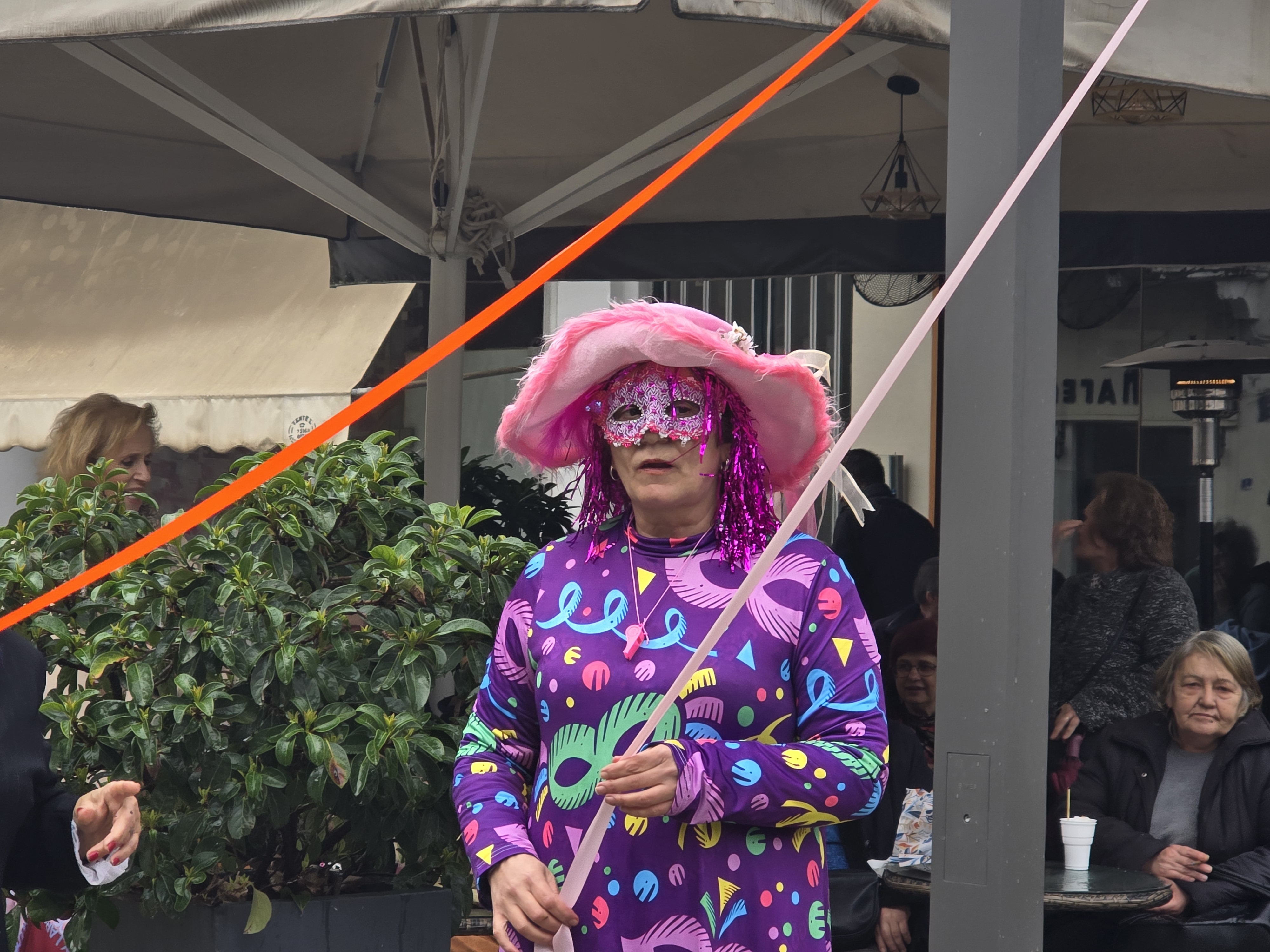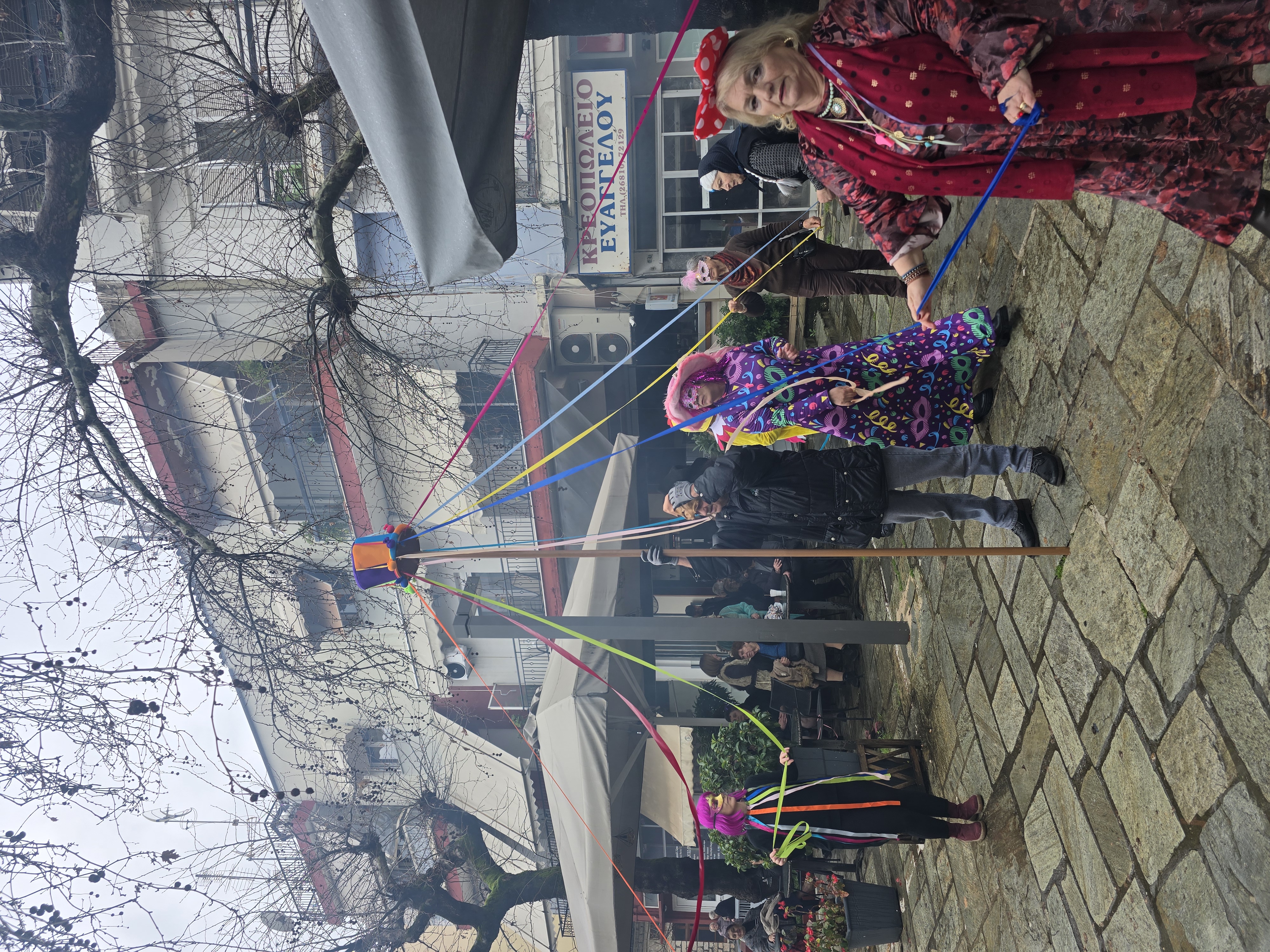 Ξεχωριστή νότα έδωσε το χορευτικό τμήμα του ΚΑΠΗ, το οποίο “έπλεξε” και χόρεψε το παραδοσιακό γαϊτανάκι, αναβιώνοντας ένα από τα πιο όμορφα Αποκριάτικα έθιμα. Τραγούδια, χορός και γέλια γέμισαν την αίθουσα και την πλατεία με τους χορευτές να διασκεδάζουν με την ψυχή τους.