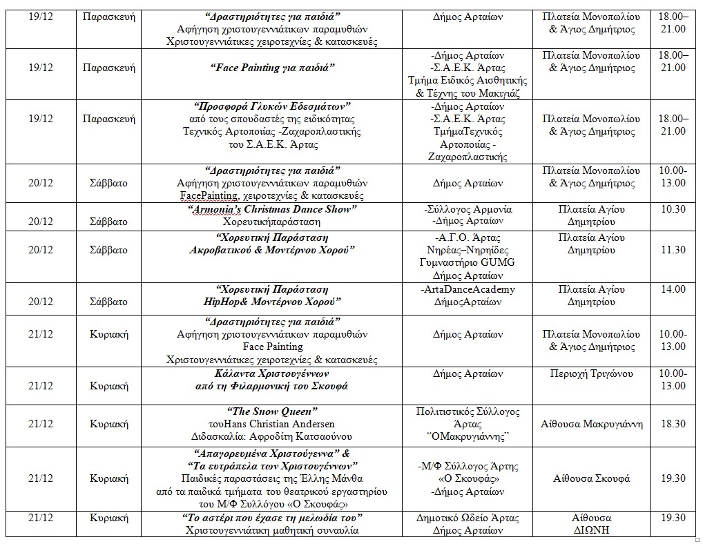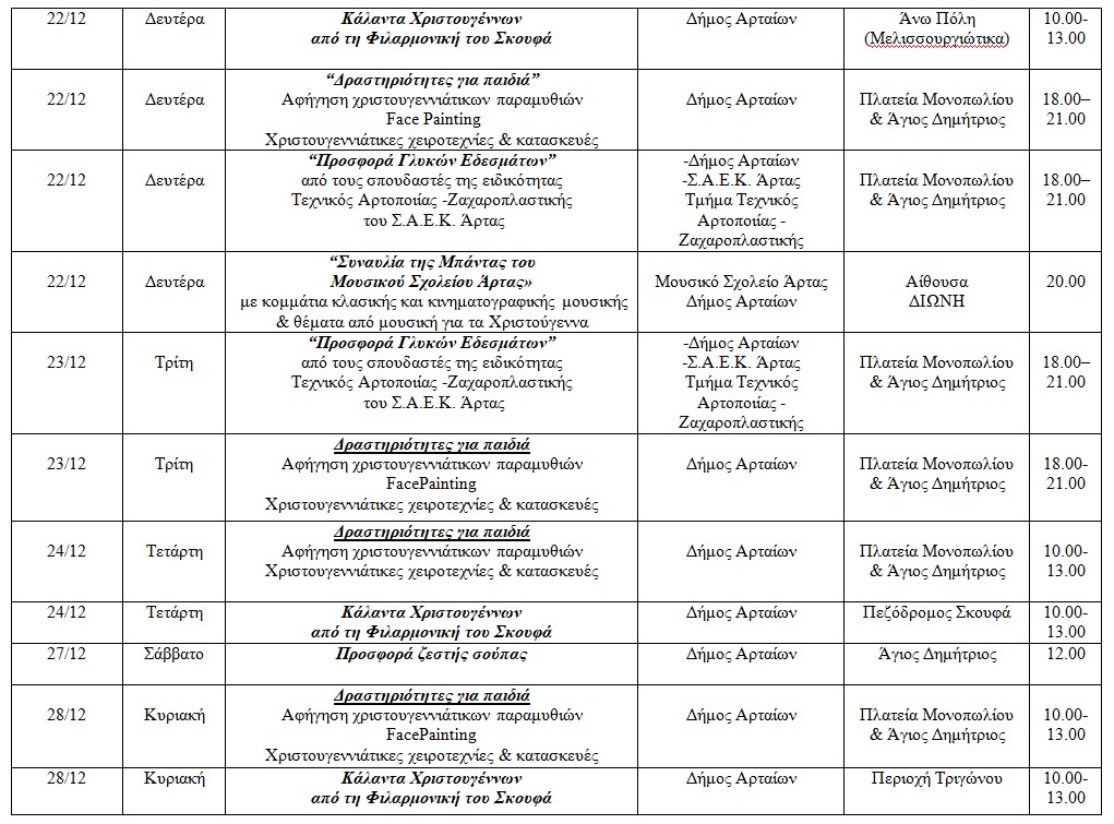 Δήμος Αρταίων: Πρόγραμμα εκδηλώσεων – ΧΡΙΣΤΟΥΓΕΝΝΑ 2025