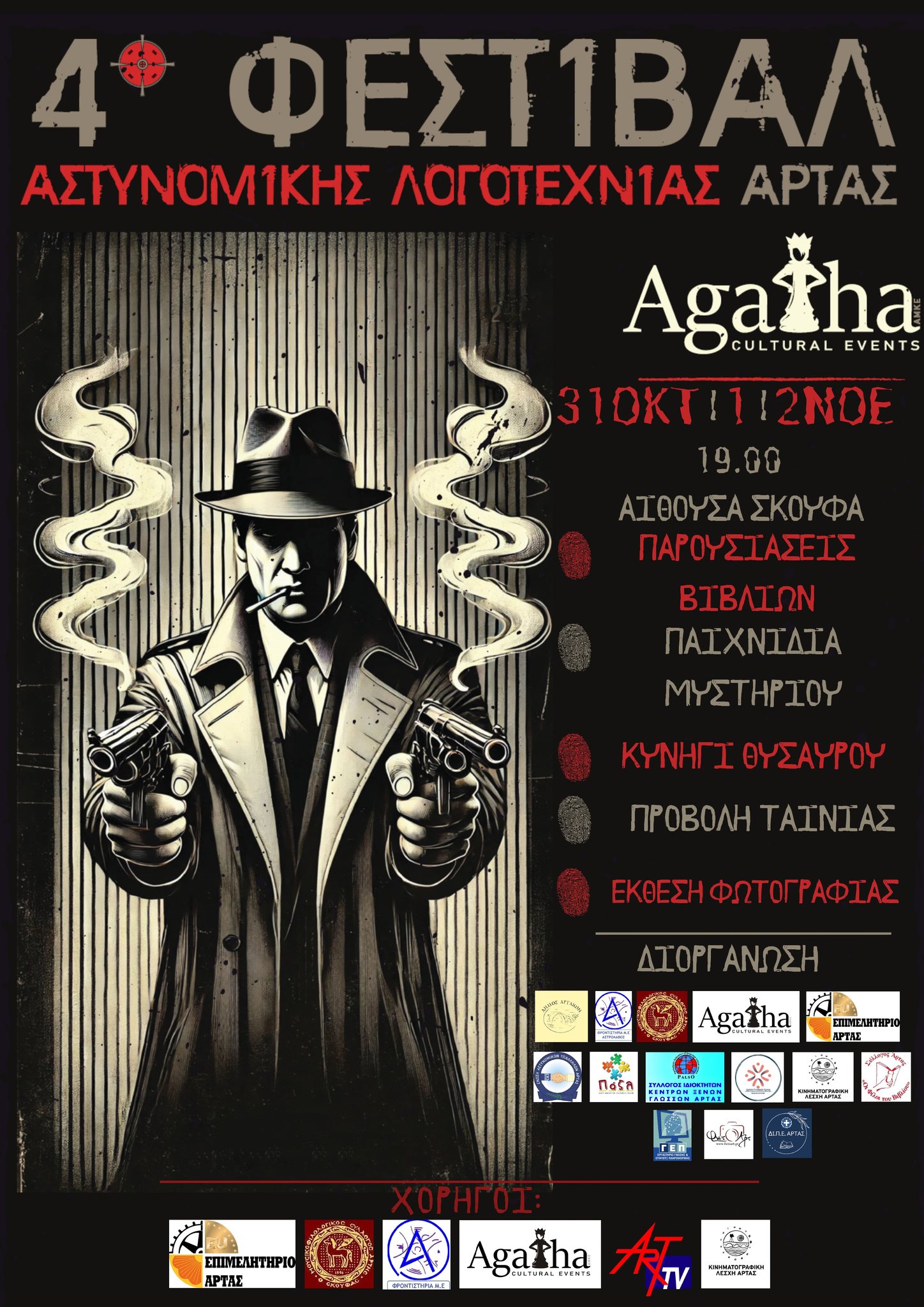Το 4ο Φεστιβάλ Αστυνομικής Λογοτεχνίας Άρτας, που διοργανώνεται από την ομάδα Agatha Cultural Events σε συνεργασία με το Επιμελητήριο Άρτας και άλλους τοπικούς φορείς, επιστρέφει για τρεις μέρες γεμάτες δράση, βιβλία και μυστήριο.