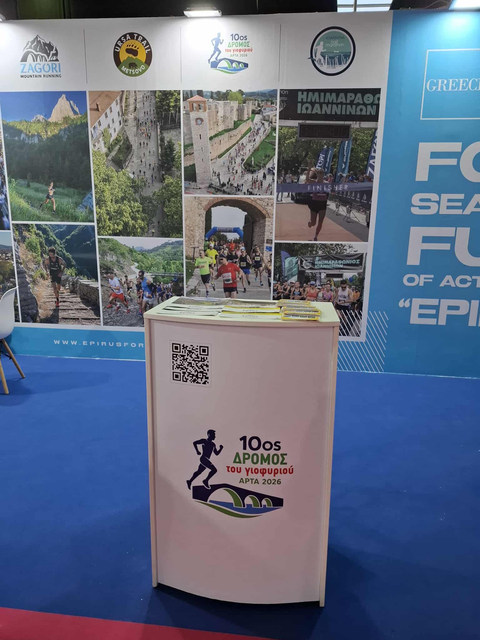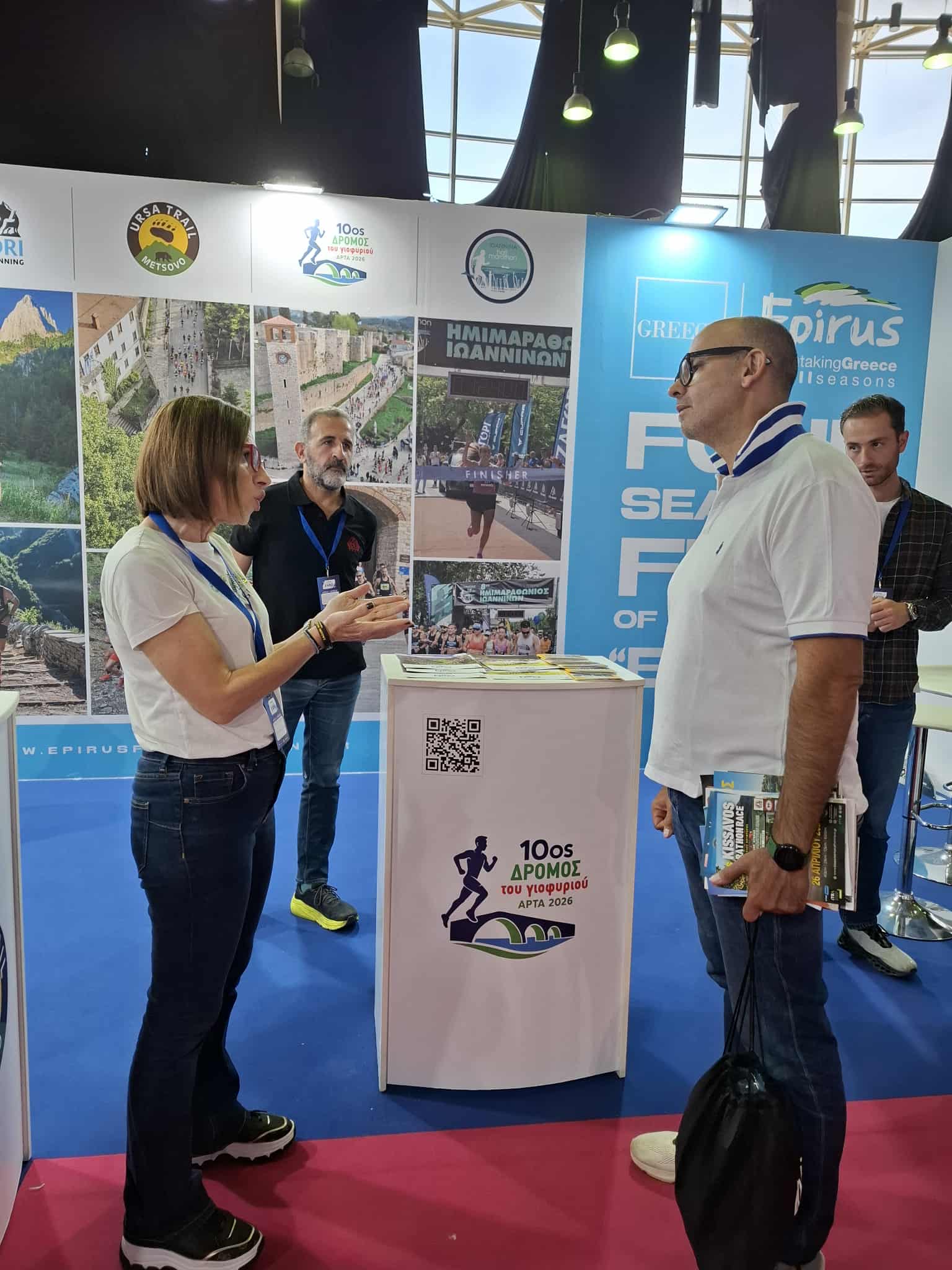 Στο πλαίσιο της παρουσίας του, ο Δήμος Αρταίων με επικεφαλής τον Αντιδήμαρχο Αθλητισμού και Παιδείας κ. Χρήστο Γιώτη, ενημερώνει το κοινό για τη μεγάλη δρομική γιορτή της Άρτας, τον Ημιμαραθώνιο «Δρόμος του Γιοφυριού», προβάλλοντας παράλληλα το αθλητικό πνεύμα, τον πολιτισμό και τη φυσική ομορφιά της Άρτας.